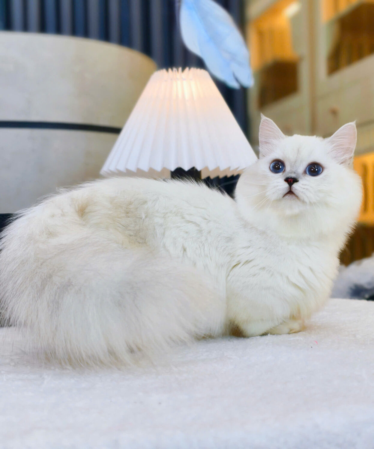 UYE2381 là phiên bản ALN chân lùn của màu xám xanh (blue) cổ điển. Bé sở hữu bộ lông ngắn, dày, đàn hồi màu xám tro ánh xanh, kết hợp với vóc dáng lùn tịt, thân hình mũm mĩm. Bốn chân ngắn cũn và khuôn mặt tròn xoe, má phính khiến bé trông cực kỳ ngộ nghĩnh nhưng vẫn giữ được nét sang trọng của màu lông.