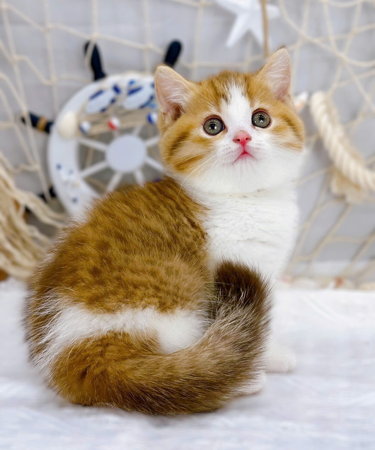 SUK6428 là một bé mèo ALN tiêu chuẩn, sang trọng với bộ lông ngắn màu golden (vàng kim). Màu lông vàng óng ả, quý phái, kết hợp với bộ lông dày, ngắn, đàn hồi. Thân hình cơ bắp, tròn trịa và khuôn mặt má phính tạo nên một ‘hoàng thượng’ thực thụ.